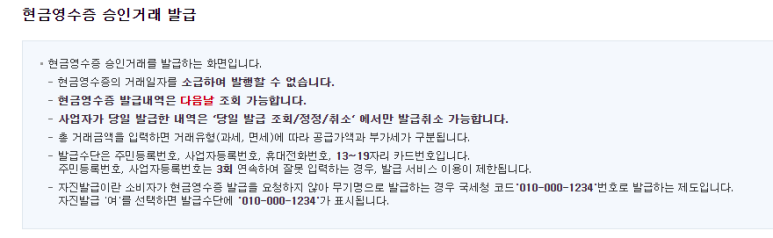→ 하단에 현금영수증 발급
