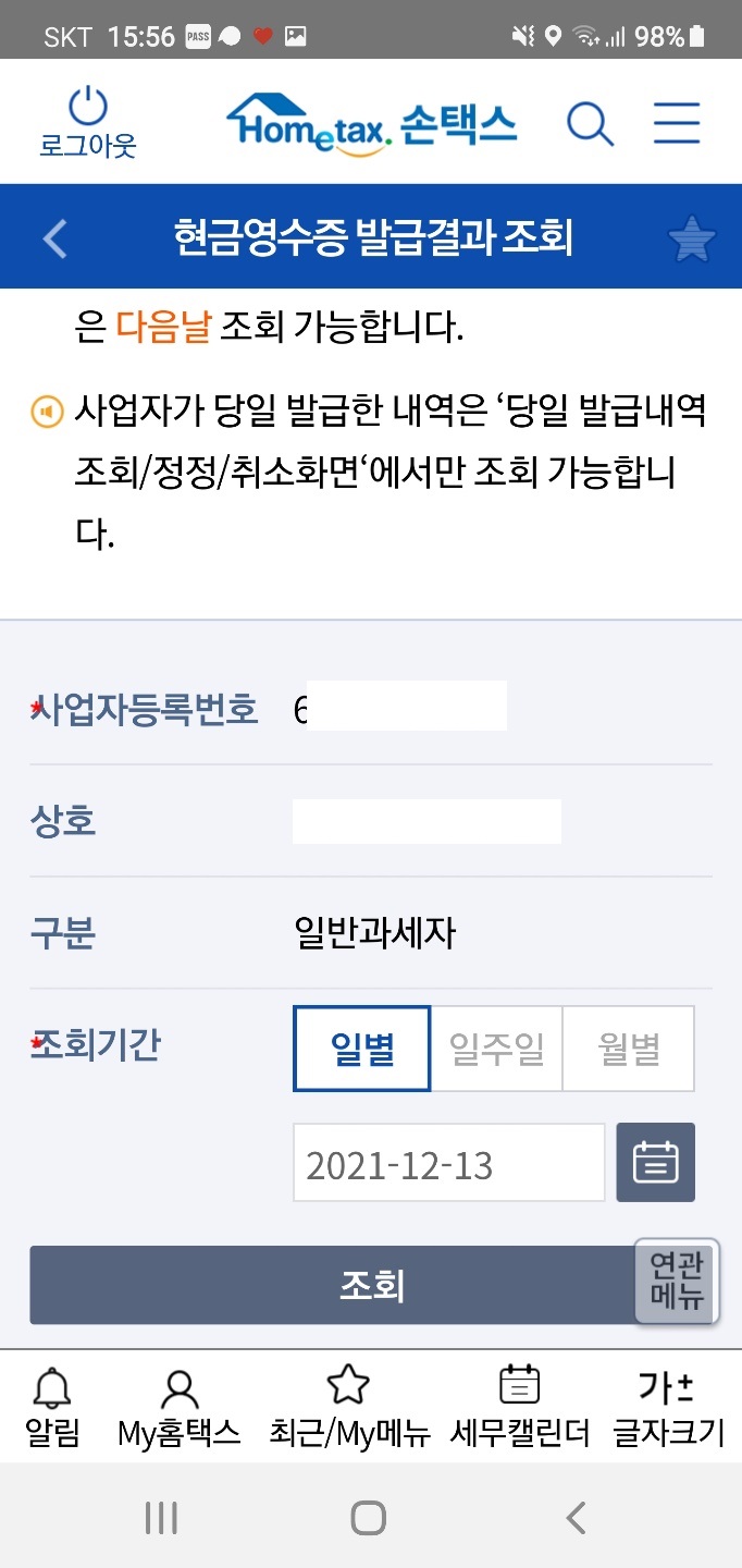 조회발급 → 현금영수증 발급 |