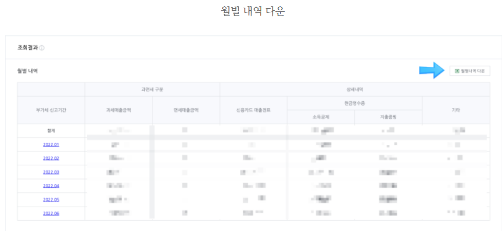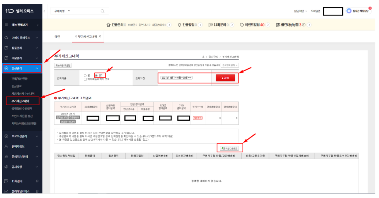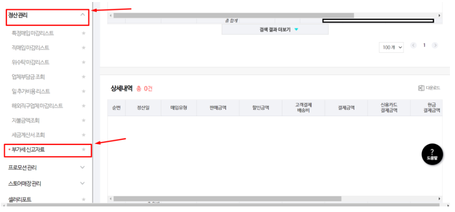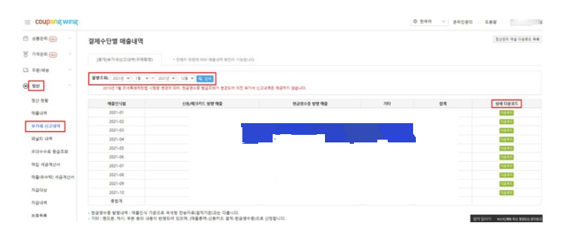 부가세신고 사이트별 온라인매출 조회