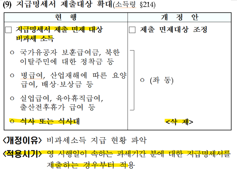 또한, 지급명세서 제출시 미제출 비과세에서 제출비과세로 개정되었습니다.