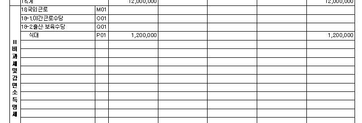 - 지급명세서에는 아래와 같이 비과세 및 감면소득명세에 연 비과세 합계액이 표기되어야 합니다.