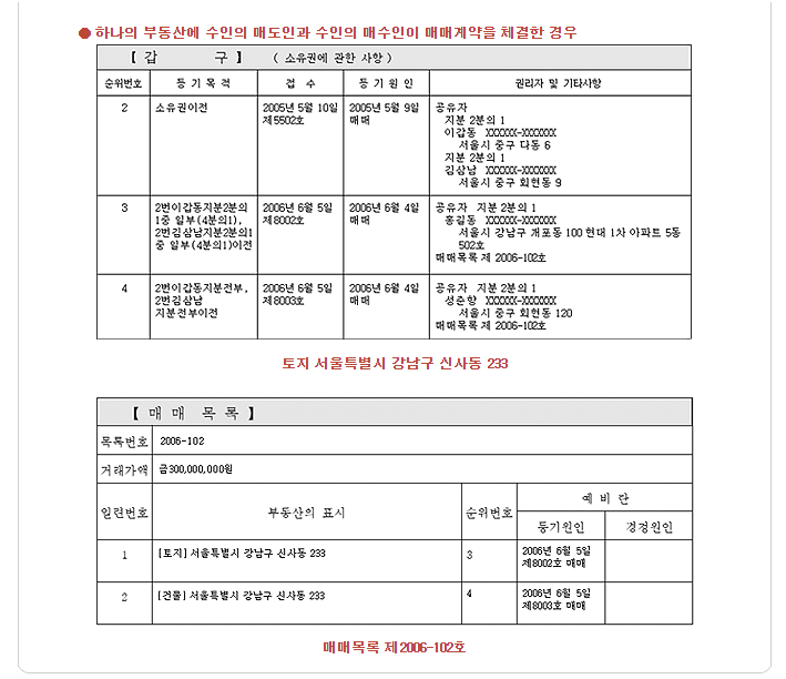 예) 소유권이전의 경우 거래가액 또는 매매 목록 번호가 기재됩니다.