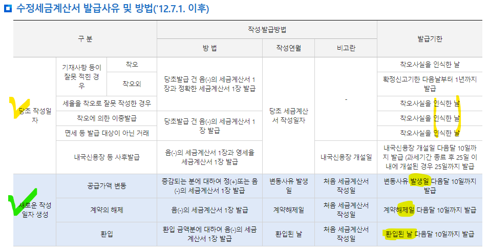 새로운 작성일자로 수정세금계산서를 발급한 경우 위 발급기한내 세금계산서를 발급하였다면 부가세 수정신고 대상이 아닙니다.