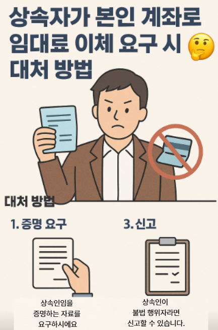 - 상속인 확인 전 임의 반환 요구에 응하지 말 것: 증빙 없는 요구에 보증금을 돌려주면 이중 반환 위험이 있습니다.