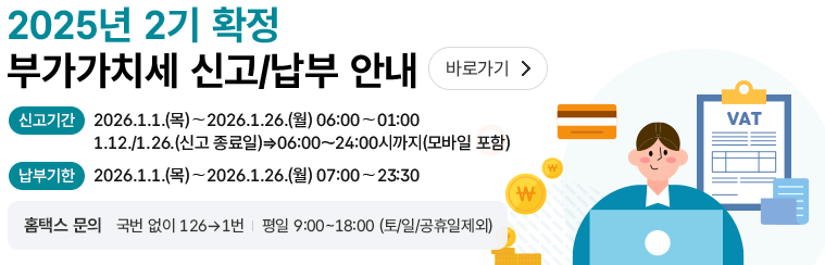 | 제2기 확정 | 7월 ~ 12월 | 1. 1. ~ 1. 26. | 일반과세자 (법인, 개인) |
