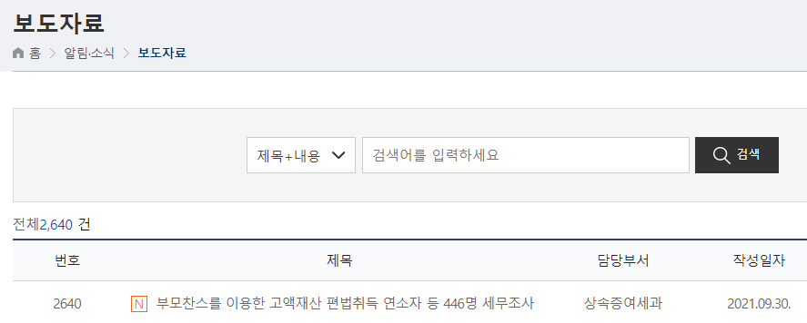 부모찬스를 이용한 고액재산 편법취득 연소자 등 446명 세무조사