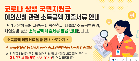 코로나 상생 국민지원금 이의신청 관련 소득금액 제출서류 안내
